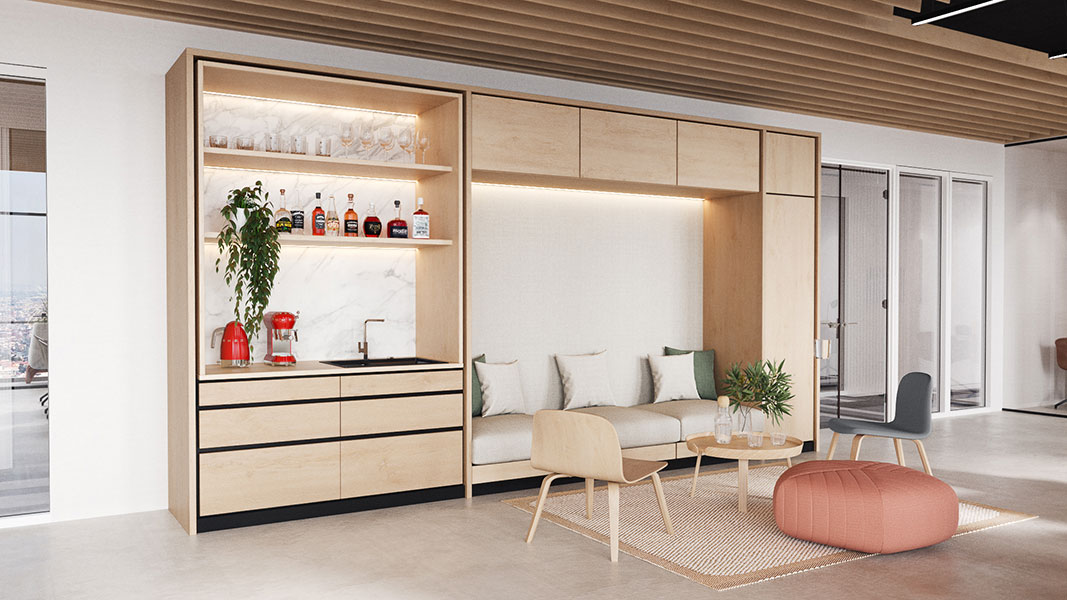 现代化的设计,能为具浴室配套和配备嵌入式厨房的空间中提供隐私和空间。