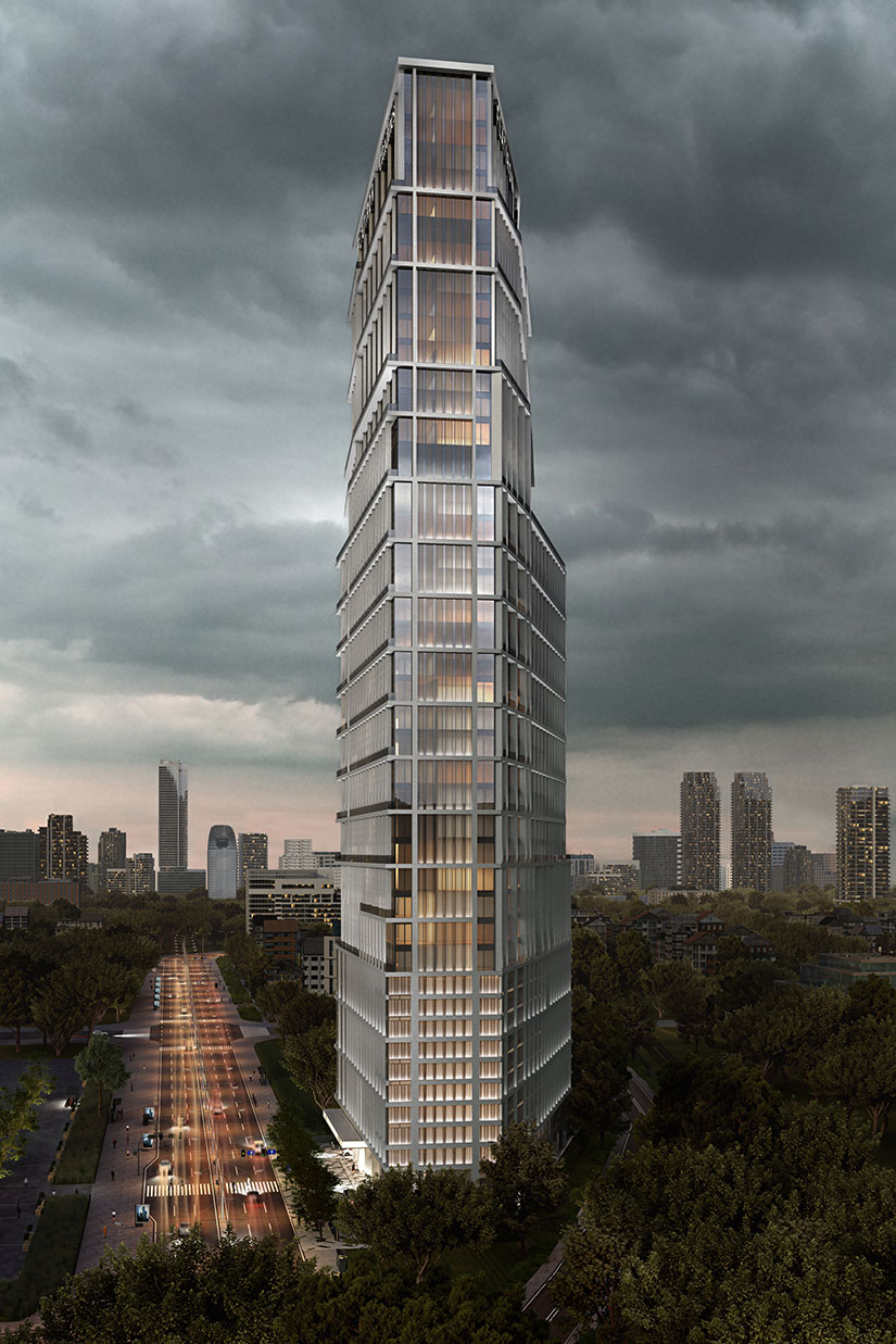 41层集甲级写字楼和馨乐庭公寓酒店为一体的现代化综合大楼,具有永恒的设计特色,如建筑物入口处的圆形下客区、优雅的步行空间和郁郁葱葱的景观。